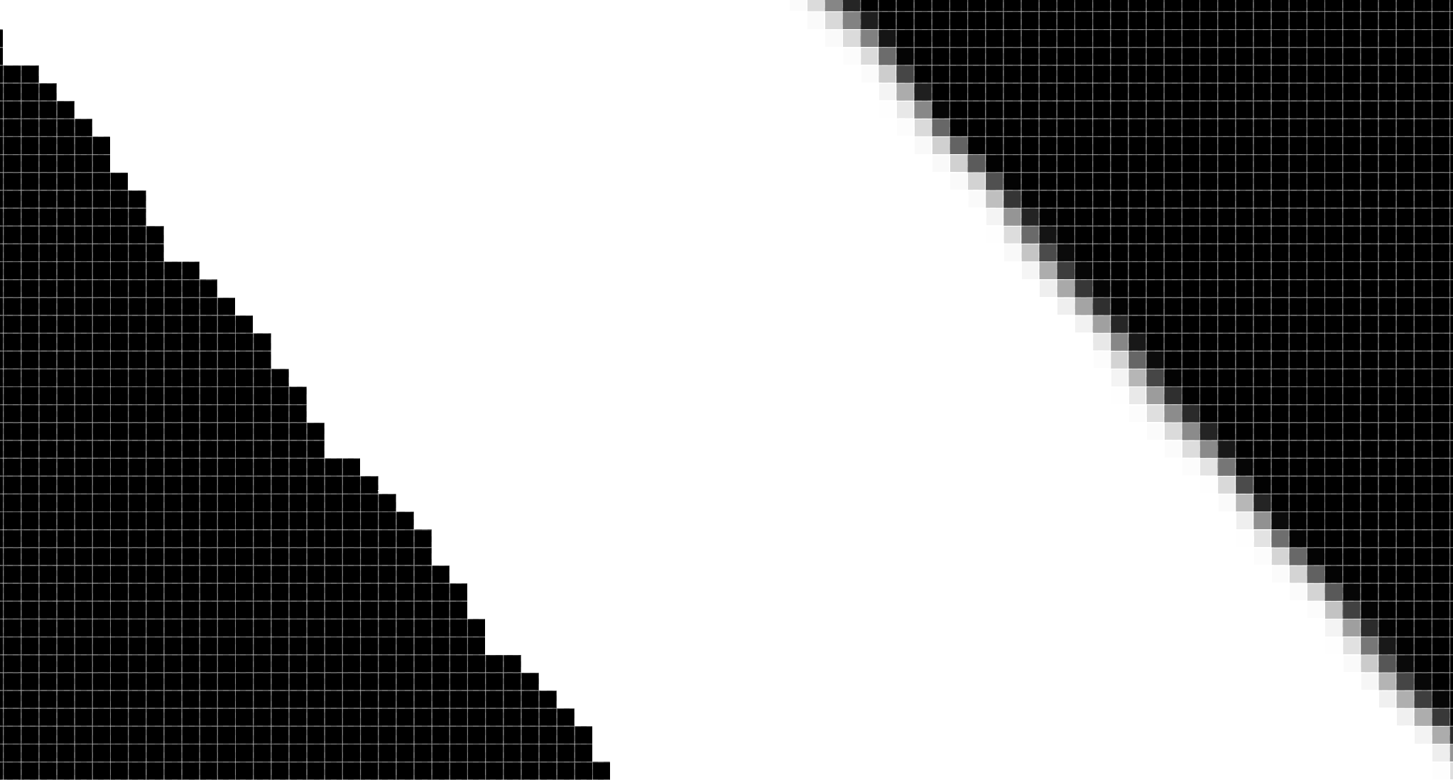 • The line on the left is aliased — meaning it is solely comprised of solid pixels (black, in this case).