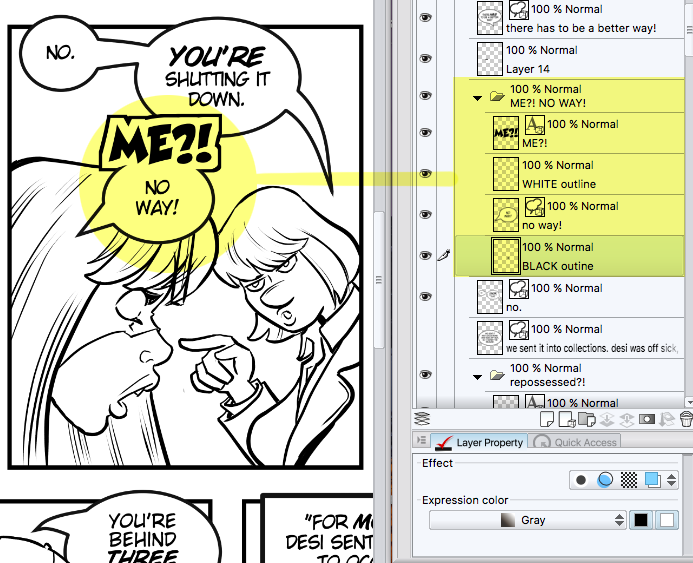 - Drag the word-balloon layer into the folder — between the white layer and the black layer!