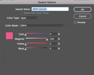 How to set up a spot-UV gloss in Adobe InDesign