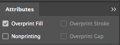 This one’s super-important! Select all of the spot gloss areas on your Spot Gloss layer and go to Window -> Output -> Attributes. Click on Overprint Fill. If you don’t do this, the spot-gloss areas will obliterate anything beneath it!