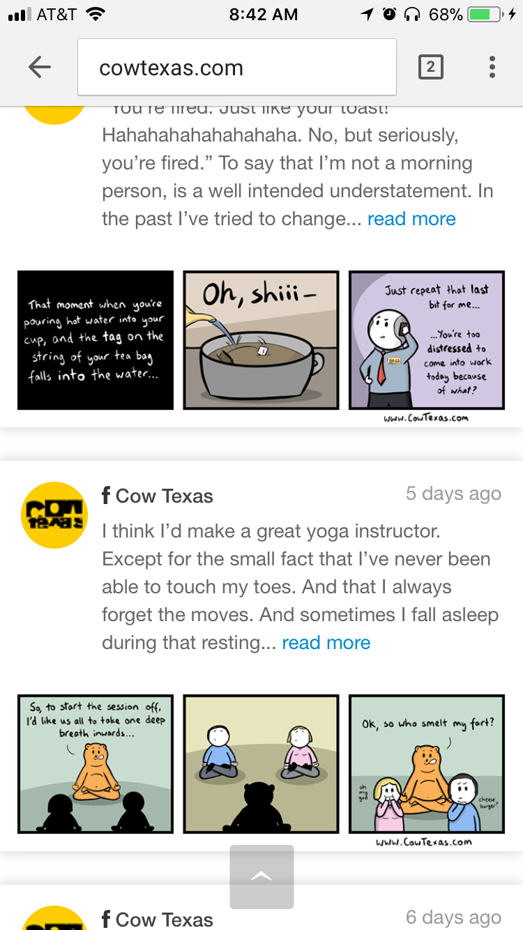This post continues the first Hot Seat critique series of the new year — a Hitch It / Ditch It. I’ll review your webcomic site and list one thing that needs improvement as well as one thing you’re doing very … Continue reading Hitch It / Ditch It Hot Seat — Cow, Texas