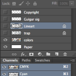 • Name the lower clone “Color” and do your coloring there. However, instead of using the Fill Bucket tool, you’ll want to use a version of the Photoshop Action described in this post.