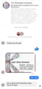 Immediately, he direct-messaged me his business card. (Please read Business Card Etiquette if you haven’t already. It applies to digital business cards, too.)