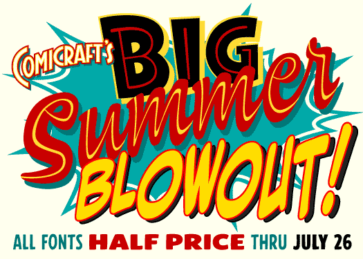 Comicraft’s Summer Blowout For a limited time, all Comicraft fonts are 50% off. You can get details here. Share this: Click to share on Facebook (Opens in new window) Facebook Click to share on X (Opens in new window) X by Brad Guigar on July 12, 2019 Posted In: Uncategorized