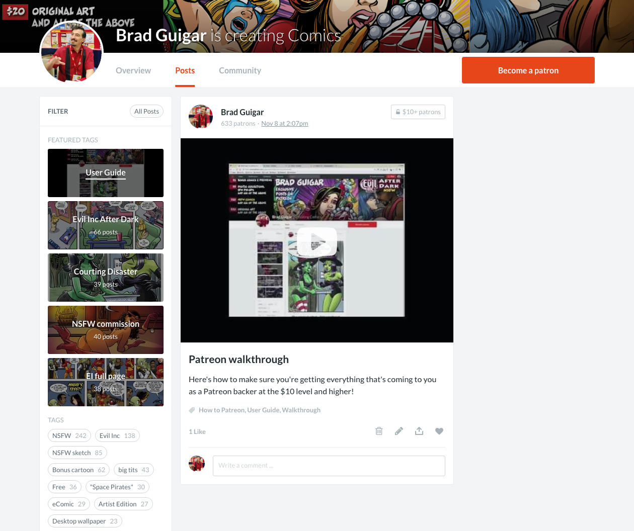 Once I posted the walkthrough video to my Patreon page, I tagged it as “User Guide,” and made it one of the Featured Tags on my Posts page. In fact, I made it the top Featured Tag: