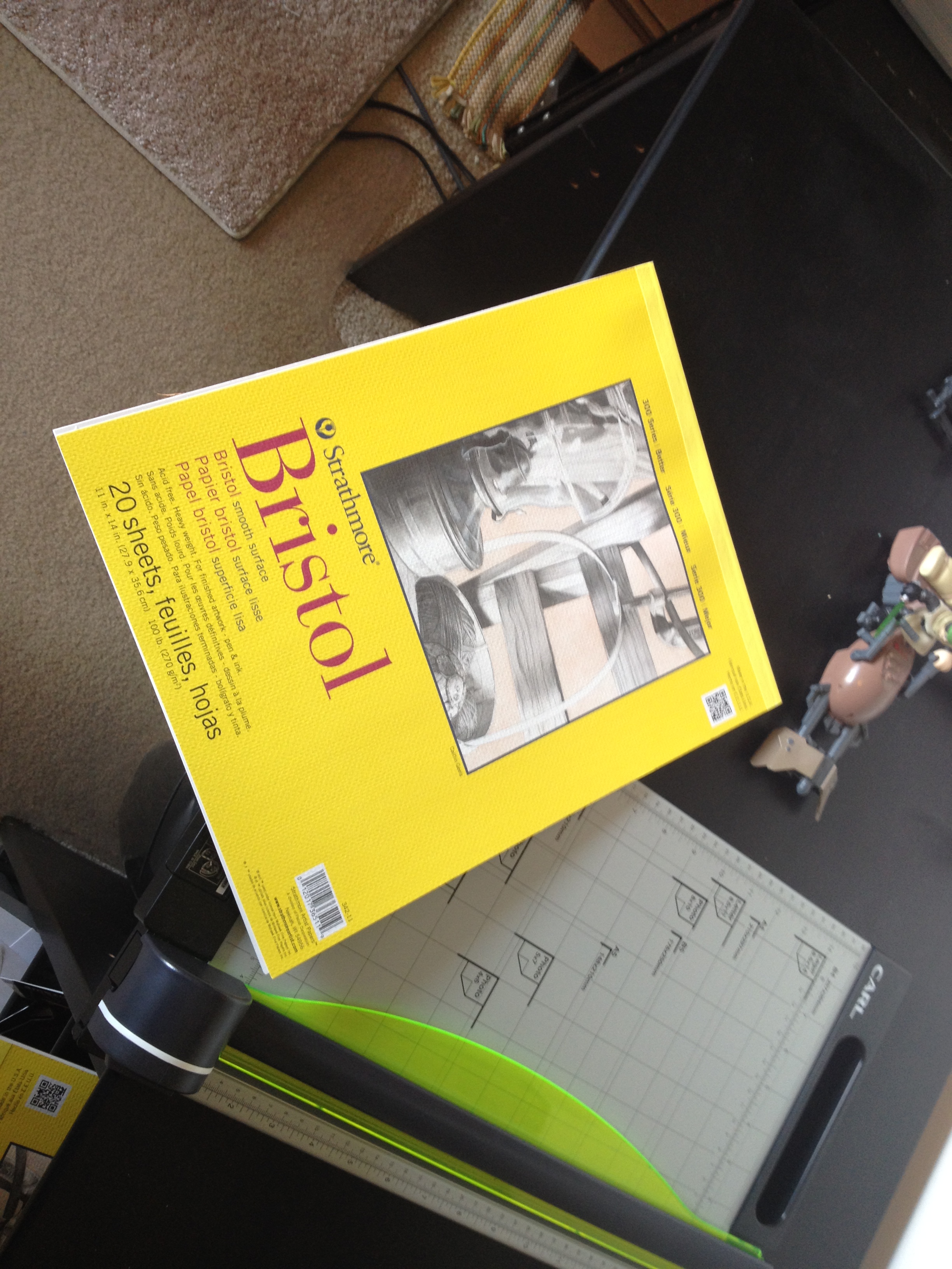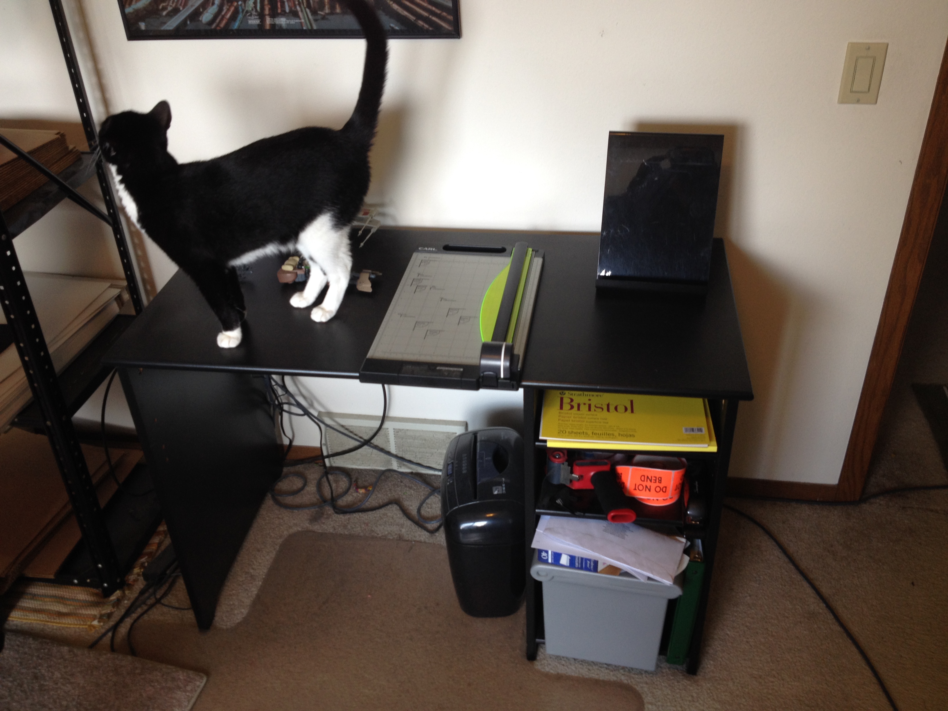 On the second desk is my newest piece of cartooning equipment: a paper cutter. Got this for Christmas last year from my sister and all I can think is: “Why didn’t I get one of these things sooner?” I used to cut my paper by hand like some sort of animal.