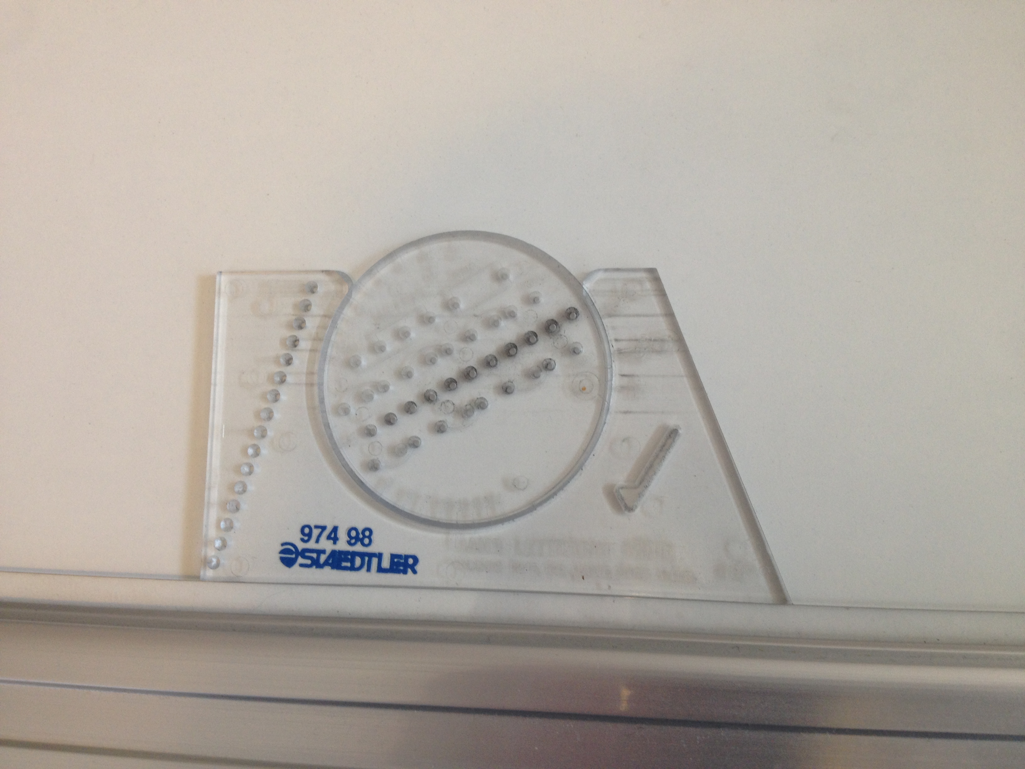 Voila! The goofy-looking piece of plastic in action. I hand-letter my comics and it’s important for me to figure out how many lines of text I’m going to need. When I write in my notebook I write at the same size as I would for the actual strip. That way I know that if there’s three lines of text in my notebook, I’ll need three lines of text in my strip.